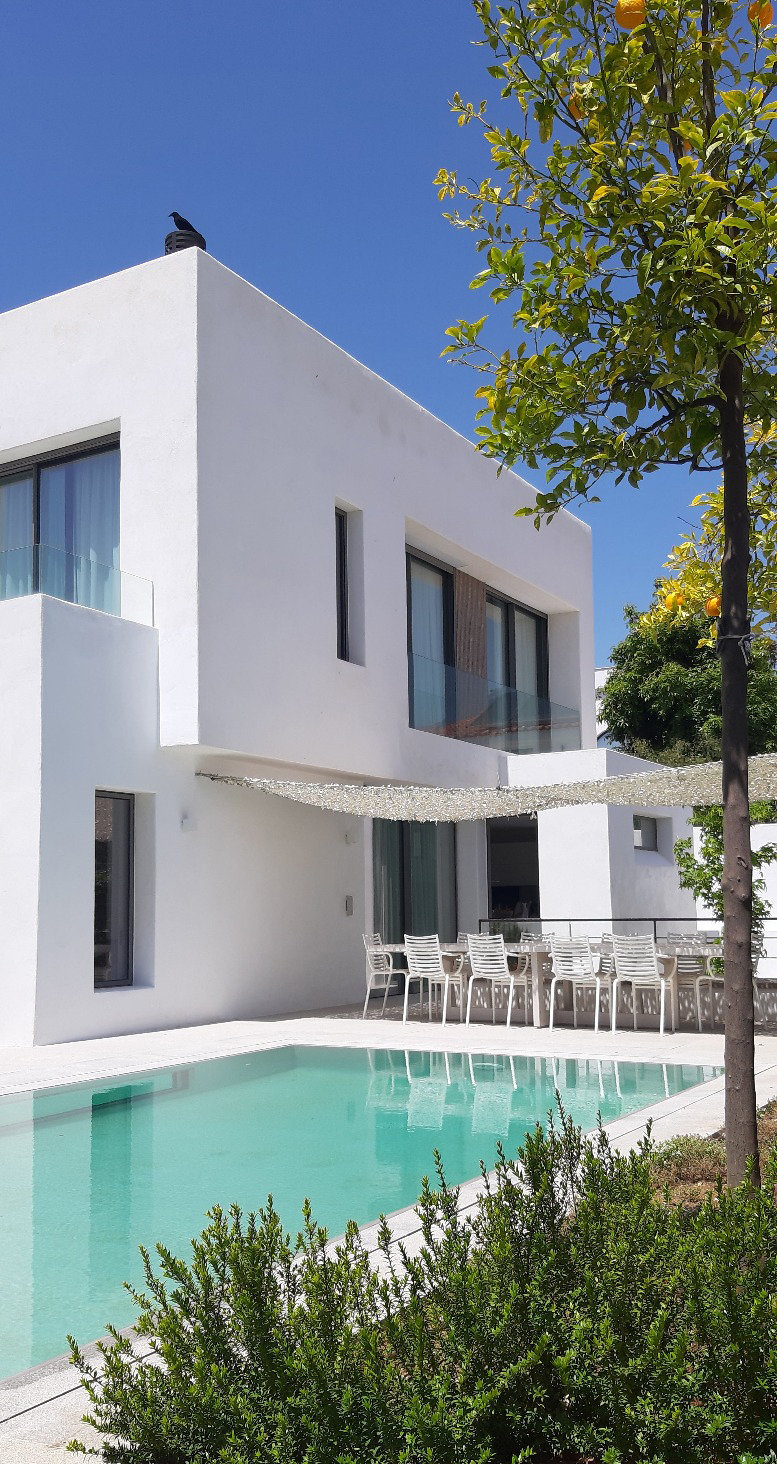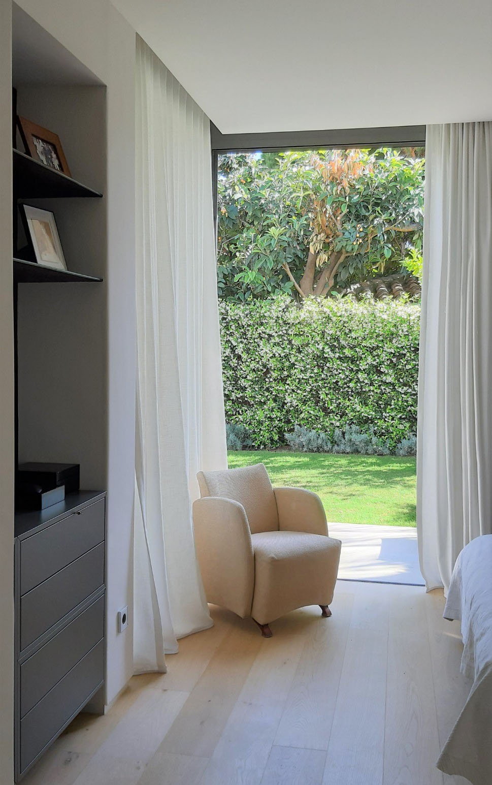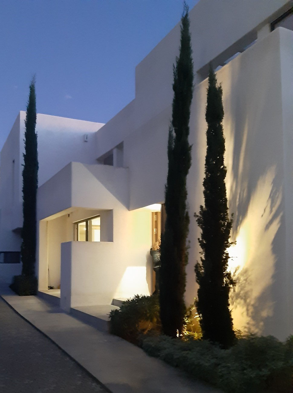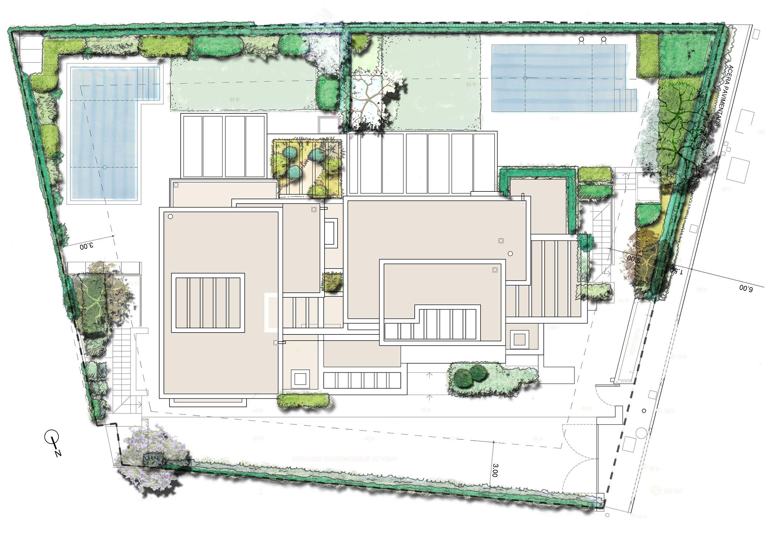 The garden spaces are considered pieces of architecture that act as exterior rooms in extension of the interior spaces and the porches and terraces. The green framework created around the architecture is based on a selection of Mediterranean plants with low water consumption.
