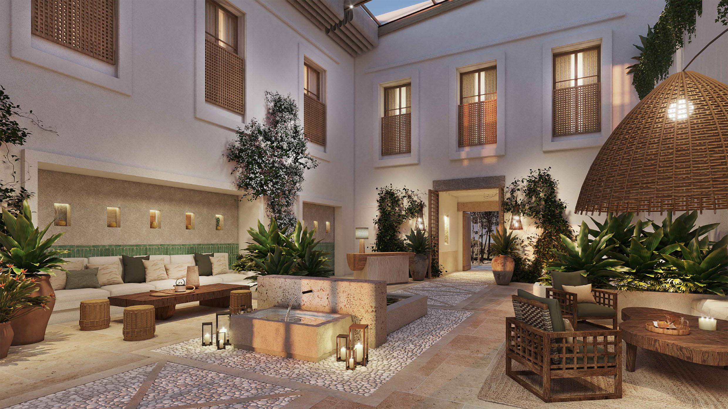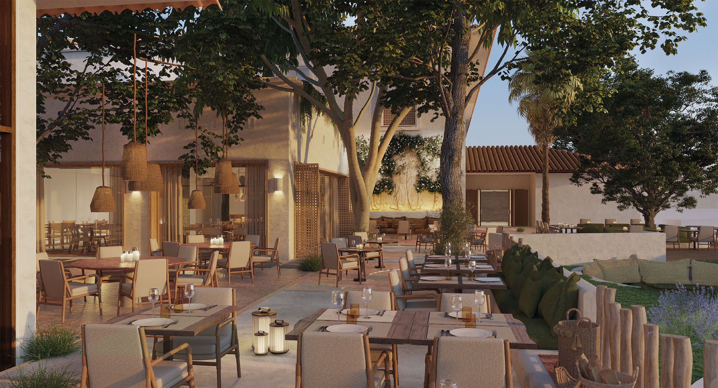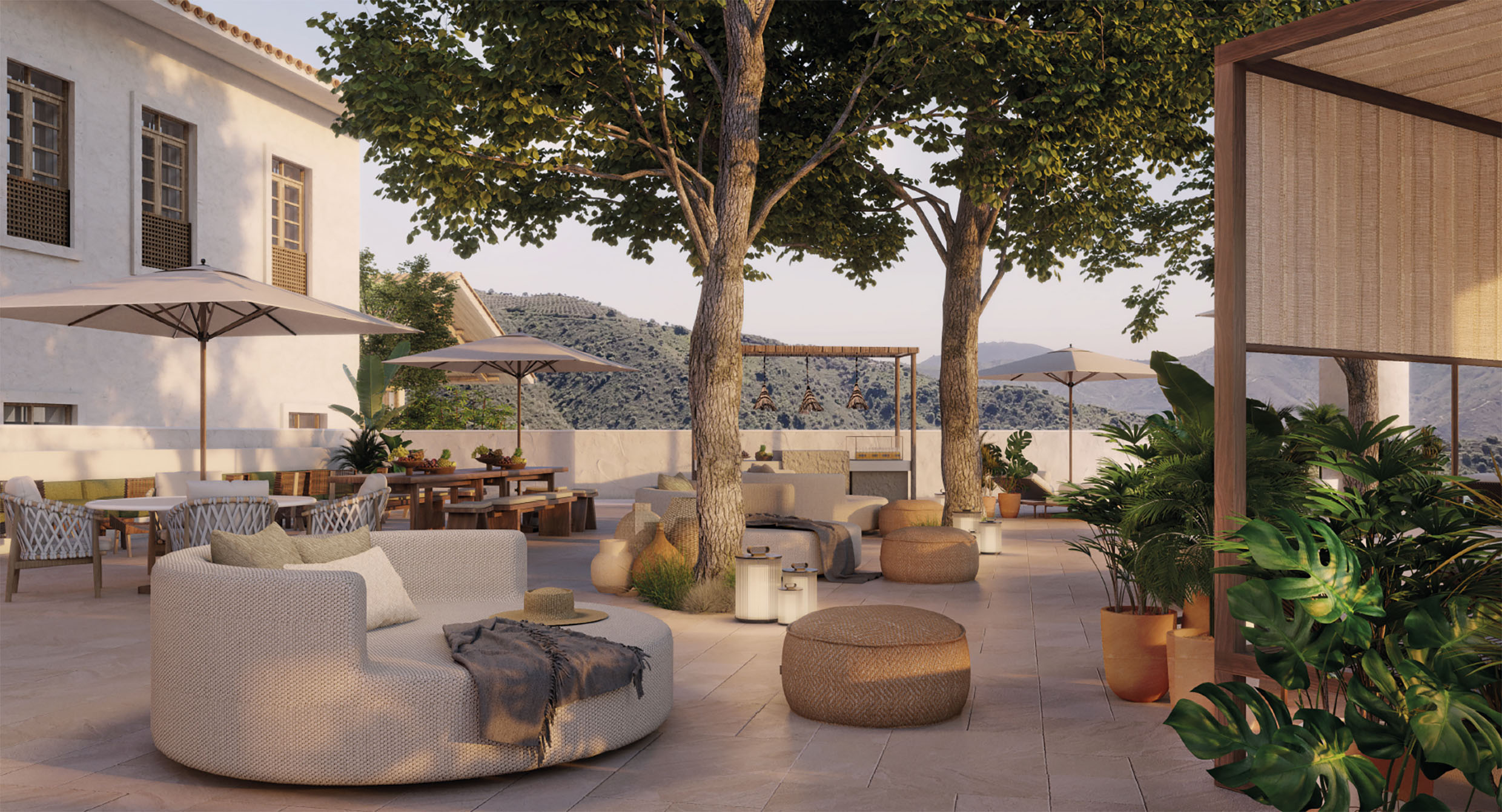 Asimismo, se reconfigura el campo de olivos existente y se recrean los bancales de frutales y huertas aromáticas vinculados al antiguo cortijo. Además, existen áreas de paseo y descanso vinculadas a la práctica del yoga con un sistema de plantaciones naturalistas que emula la propia naturaleza circundante.