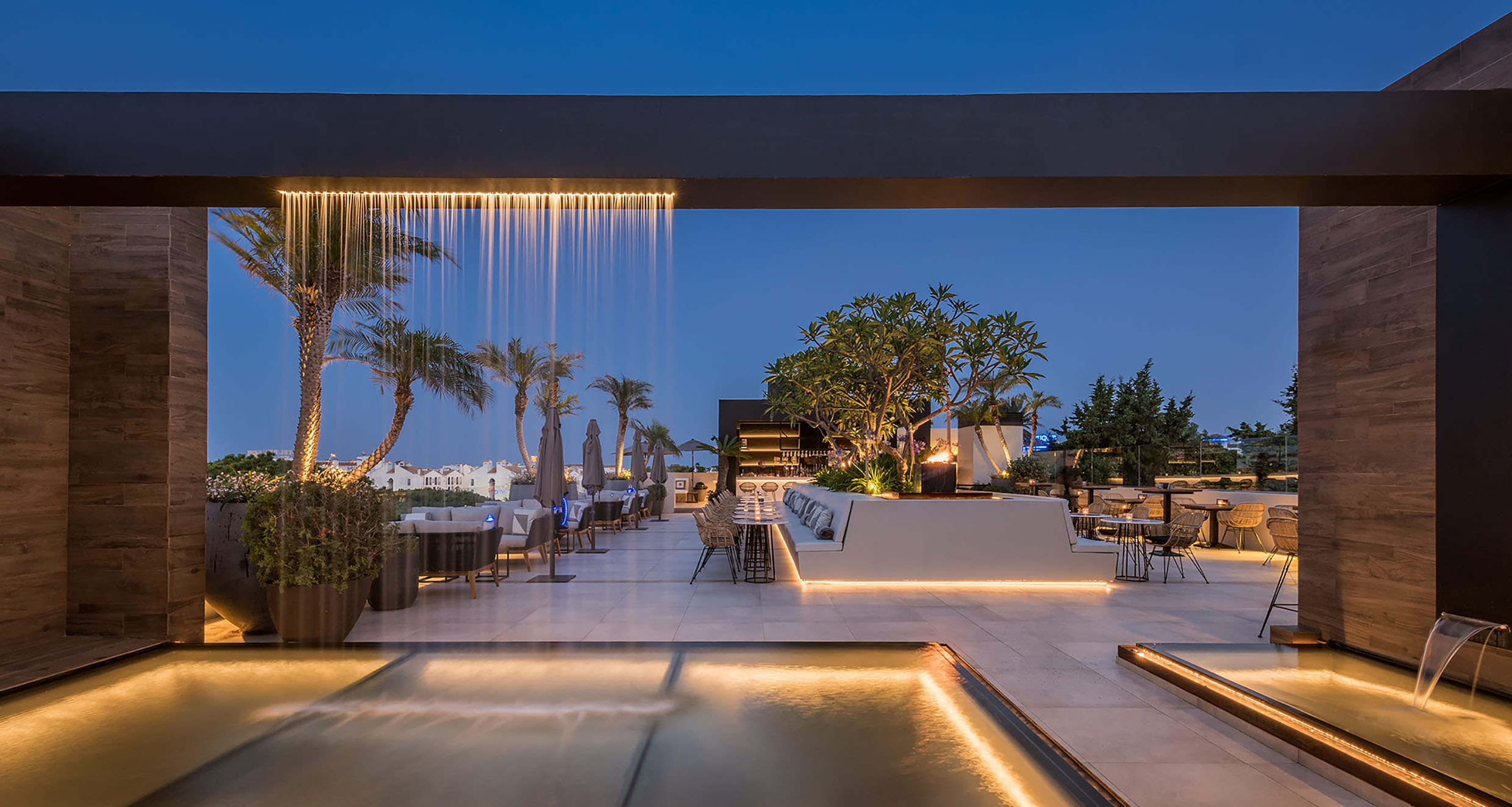 The landscape intervention tries to organize the outdoor an indoor spaces of the BREATHE Restaurant, located in Puerto Banus, Marbella, Spain. The landscaping project is understood as a global intervention that works not only on the vegetation, but on the entire space, through architecture, light, water, fire, lighting, materials, etc. for the creation of your own and unique environment.