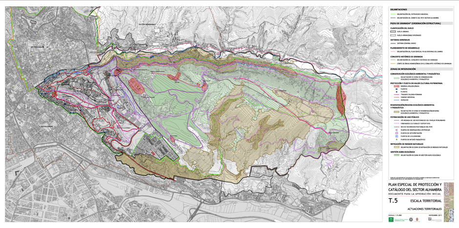 For this reason, and also due to the current legal framework, it is necessary to review and adapt numerous aspects, from the proposal of infrastructures, services, provisions, equipment, etc., in accordance with new needs, to the implementation of activities of public interest in lands that have the non-developable land regime; from the establishment of measures aimed at the conservation, protection and improvement of the urban environment and the heritage that bears urban, historical or cultural values, to the proposal of public use for the Dehesa Park under the appropriate coordination between the Board of Trustees of the Alhambra and Generalife, the Granada City Council and the Ministry of the Environment; from the detailed planning of urban areas subject to actions or operations integrated into interior reform for their renewal, improvement, rehabilitation or filling, to the protection and improvement of landscape and physical-environmental values.
