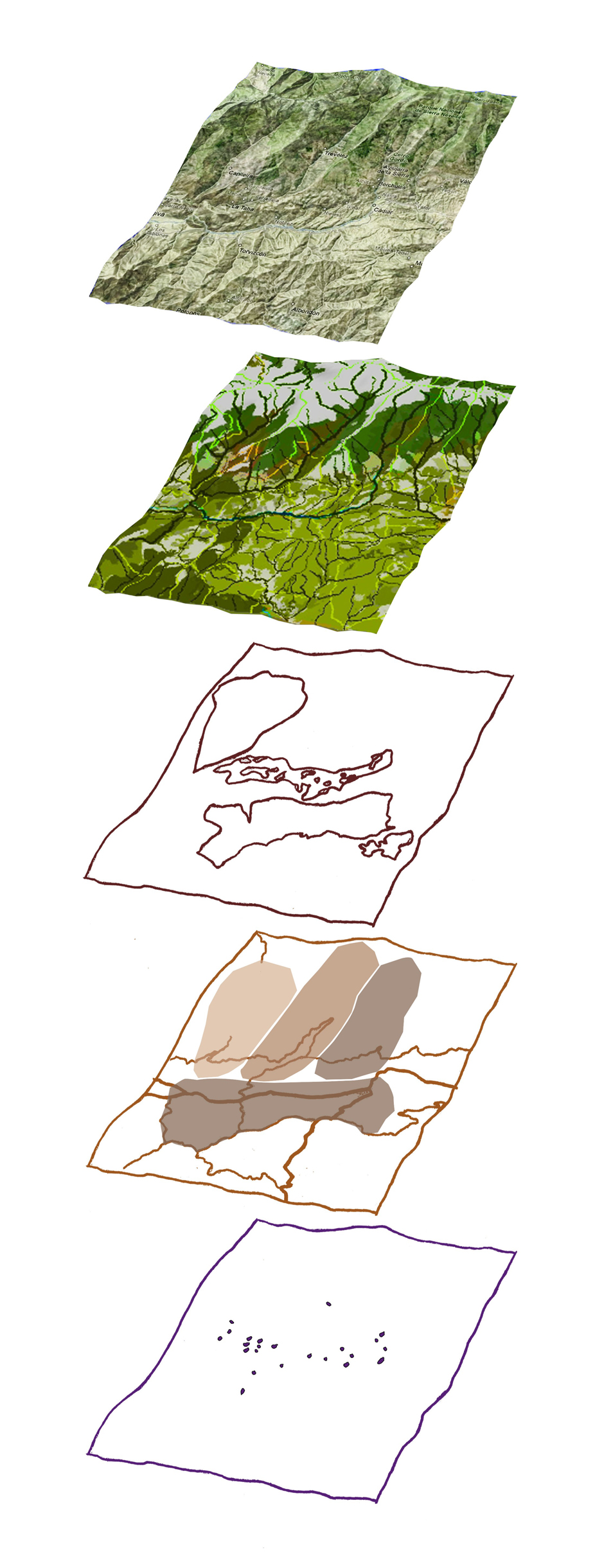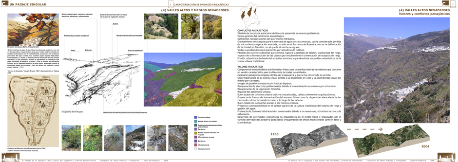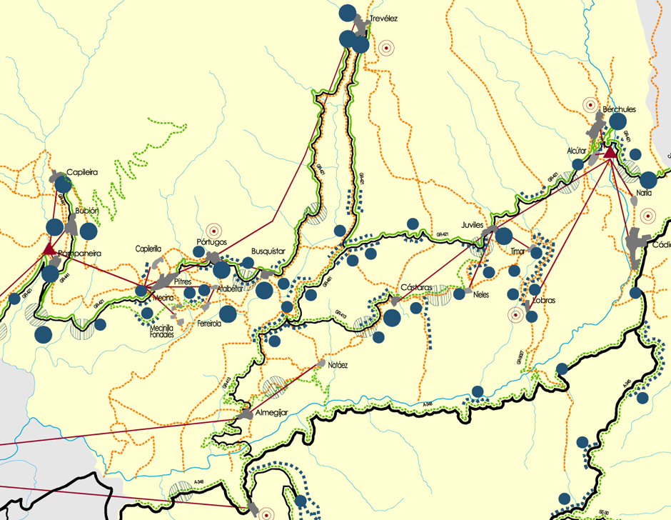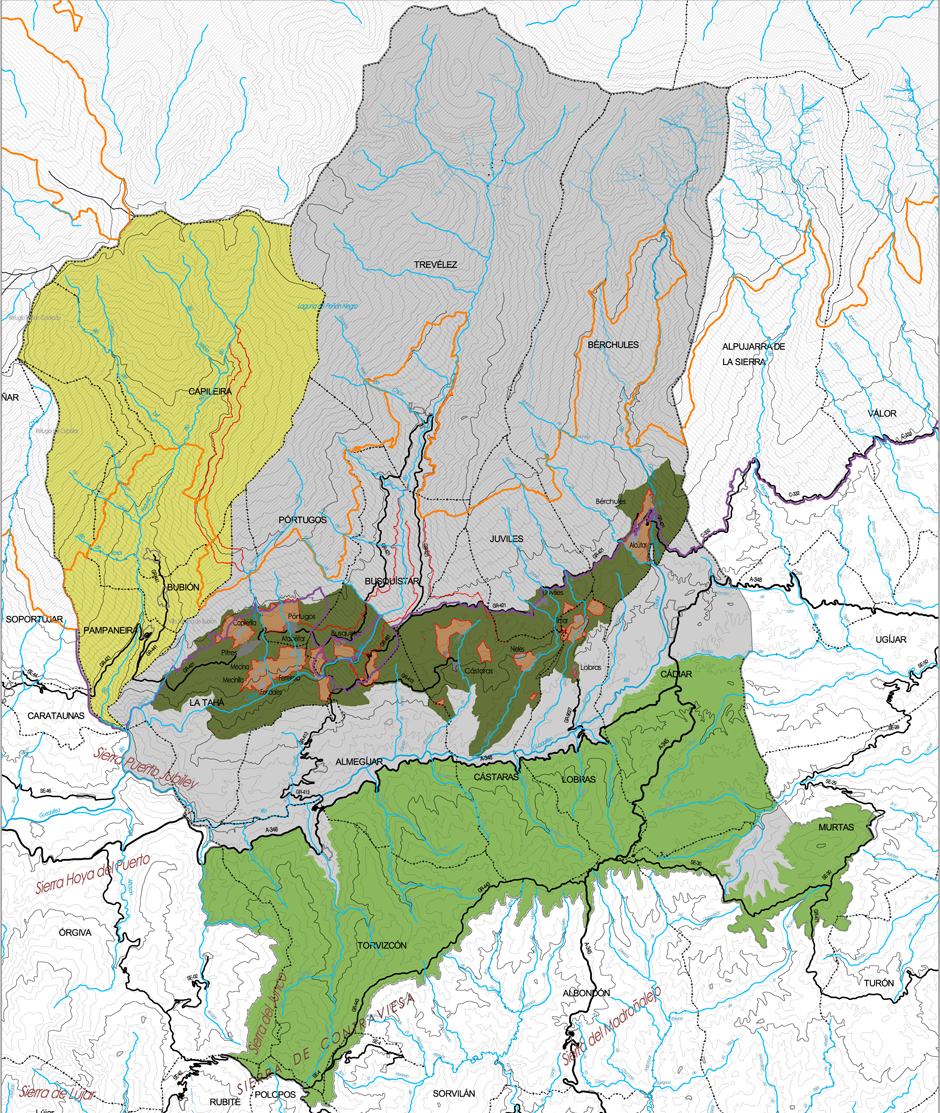 These three areas support, respectively, the bases or coherent set of propositions that define the intended future situation with the application of landscape actions and strategies. Therefore, such bases propose, first, to guarantee the integration and better use of the landscape of the territorial articulation networks; the second, to promote the maintenance of the landscape character of the Alpujarra agrarian and natural systems; and the third, recognize the set of population centers as elements of the landscape identity of La Alpujarra.