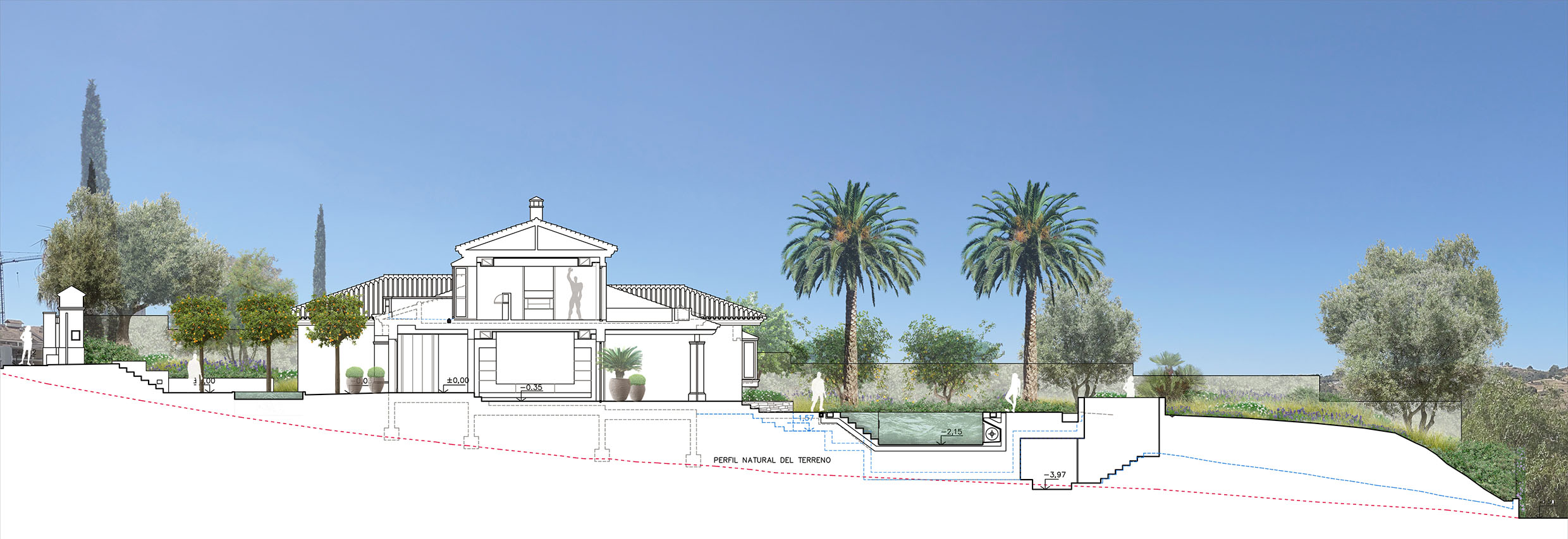 The landscaping proposal consists of developing a garden with sustainability criteria that enhances the landscape values of the place. Plants with low water demands have been used, adapted to the local environment and climate. Considering the visual elements to highlight or soften, the garden is organized around the villa, embracing the building and integrating it into the surrounding landscape.