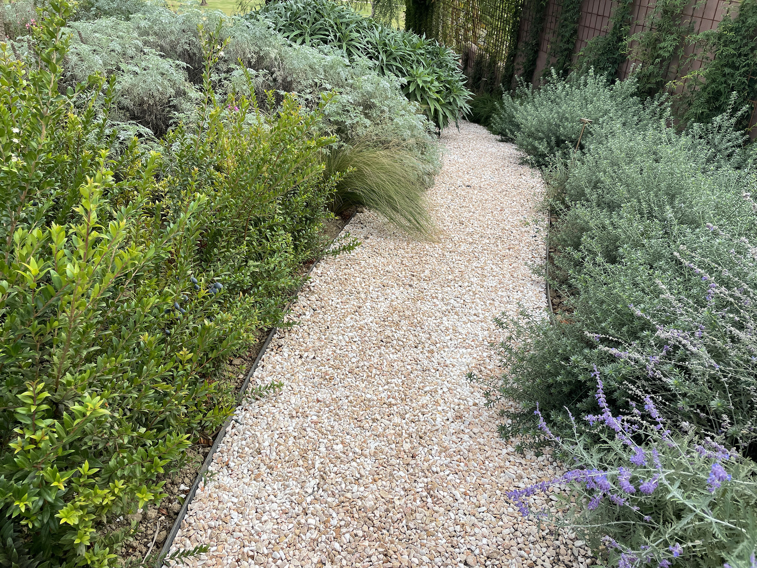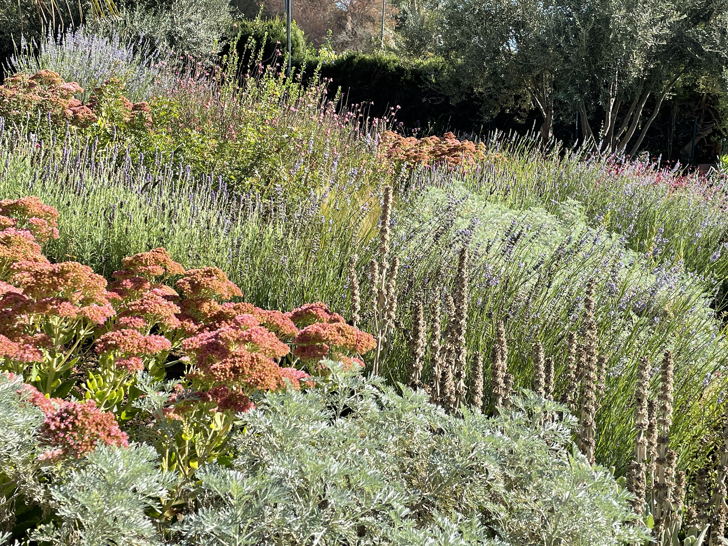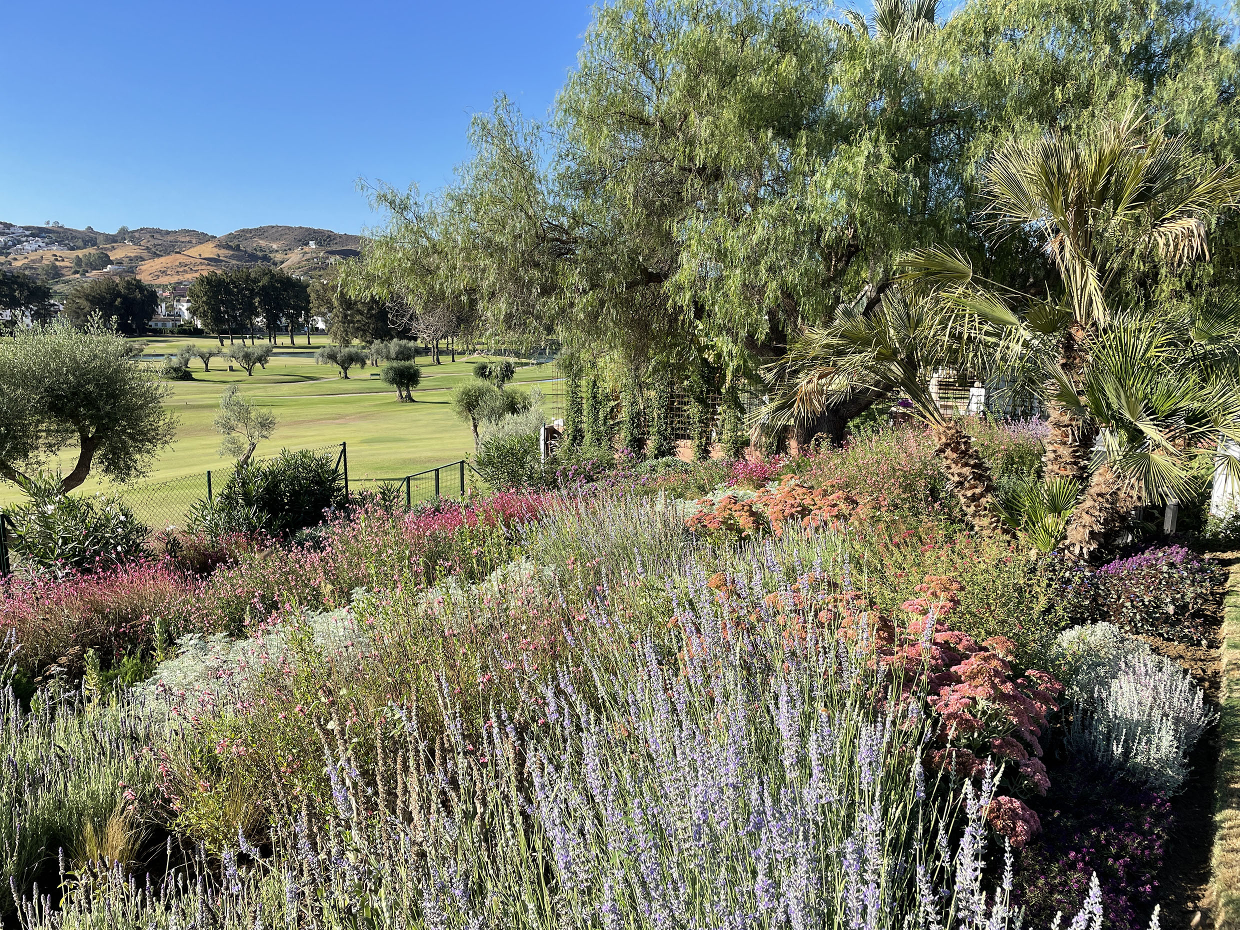 La propuesta paisajística consiste en desarrollar un jardín con criterios de sostenibilidad que potencie los valores paisajísticos del lugar. Se han utilizado plantas con pocas demandas hídricas, adaptadas al entorno y al clima local. Considerando los elementos visuales a resaltar o suavizar, el jardín se organiza alrededor de la villa, abrazando el edificio e integrándolo en el paisaje circundante.